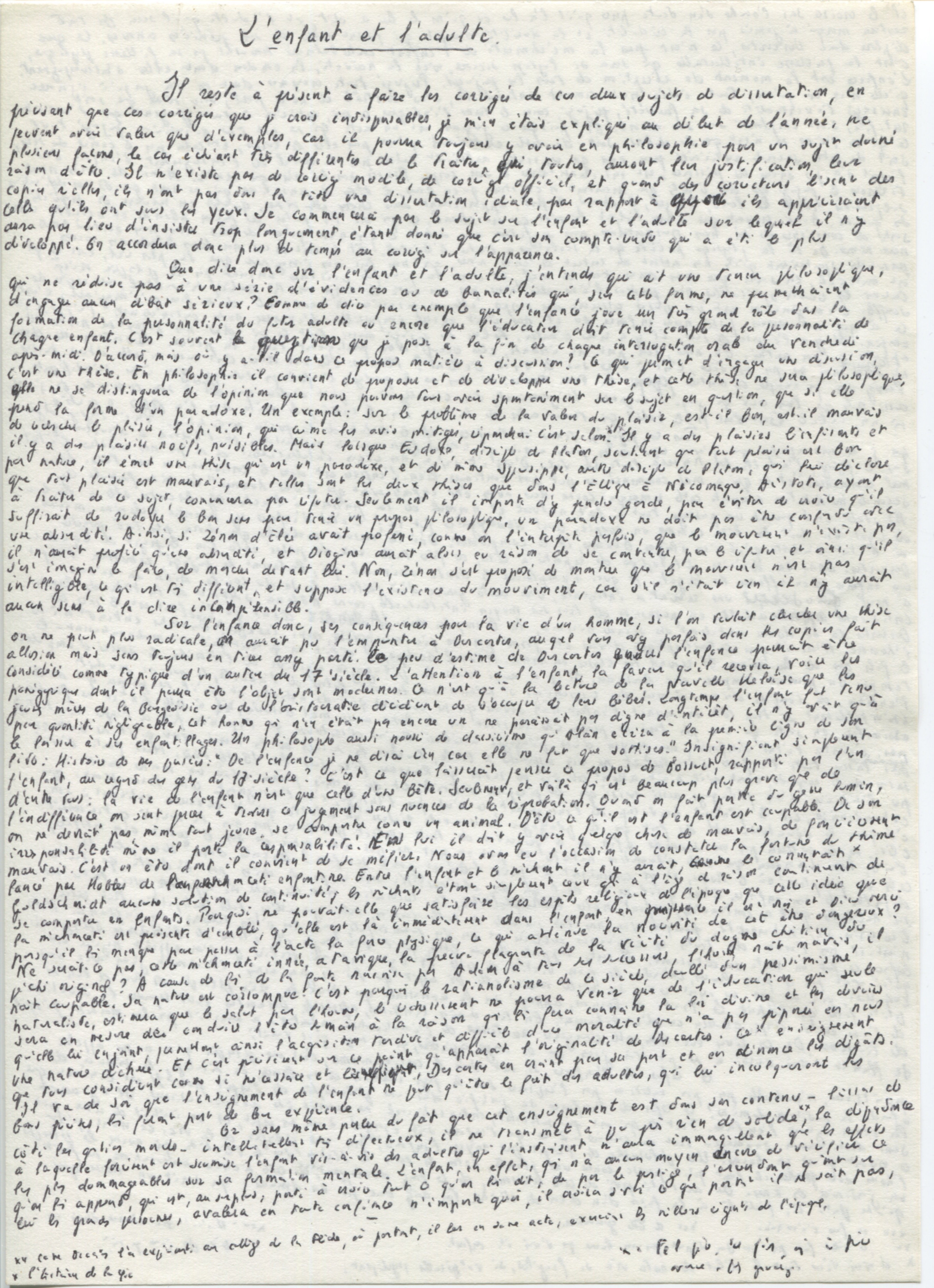 Corrigé du sujet de dissertation "L'enfant et l'adulte"